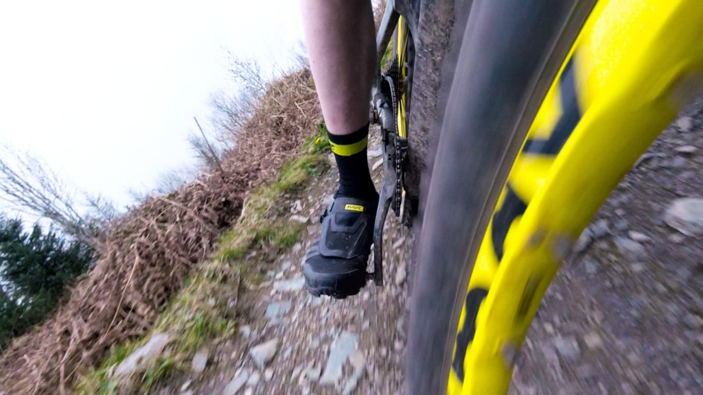 Just take a side on look at your wheel then look at the trail, and you can instantly eliminate the vast majority of what you are seeing as being ‘significant’ and requiring your attention. Sure hits are hits, and the millions of micro hits your tyre is absorbing are adding to the calories consumed column as you are forced to drive the cranks round in order to keep the bike moving. It’s a given that the line of least resistance is the most efficient line, it just may not be the fastest or feel the best given your ability and bike choice!