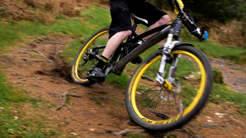 Lean the bike from left to right and right to left to get the edge of the tyre to cut into the trail surface for grip in corners and on off-camber sections