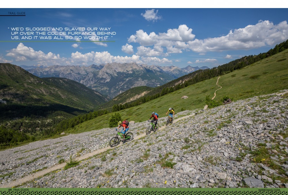 Our final trail of the trip was by far and away the best of the week. That’s impressive bearing in mind how good every trail up until this point had been. But at least forty minutes of everything you could think of in one trail wrapped our week up perfectly. Starting at Col Vieux and finishing in La Chalp, it’s an eight-kilometre hoon down one hell of a fast and fun trail. If you ride only one trail in the Queyras Regional Park, you have to make it this one.