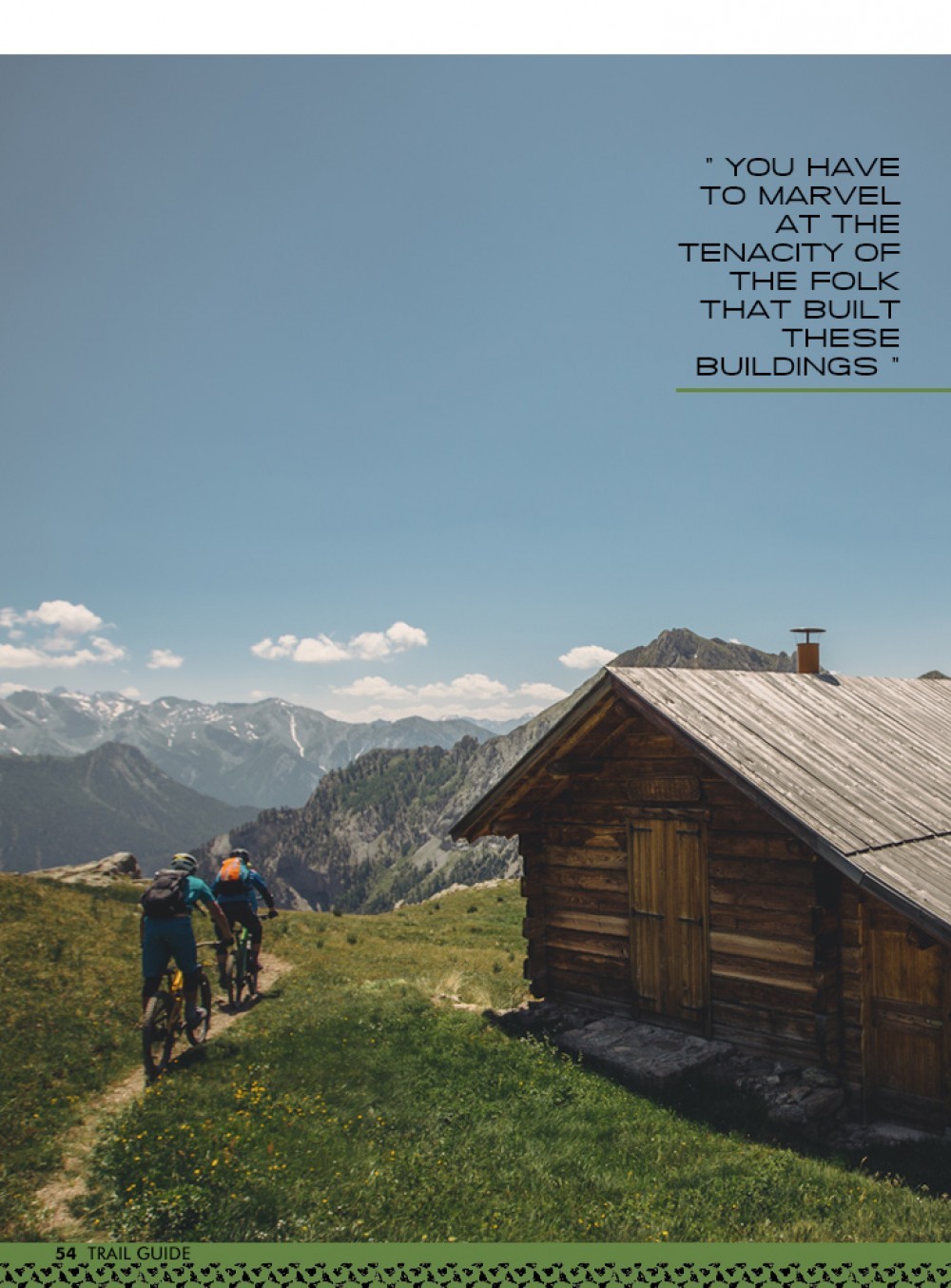 Once again the trails were different from what we’d ridden previously. Day three saw us riding a much more hard-packed, well-trodden path to start with, weaving its way between a tiny hamlet of wooden cottages situated in the most unlikely of places. You have to marvel at the tenacity of the folk that built these buildings so very long ago, and again at that of the modern-day owners who continue to keep them in a habitable state – miles from anywhere with no real vehicular access.