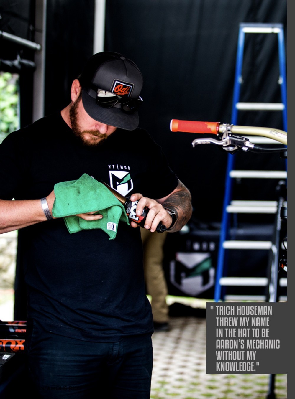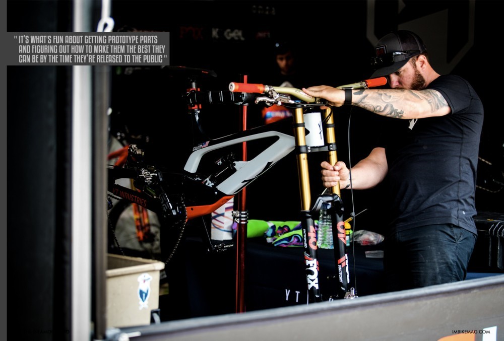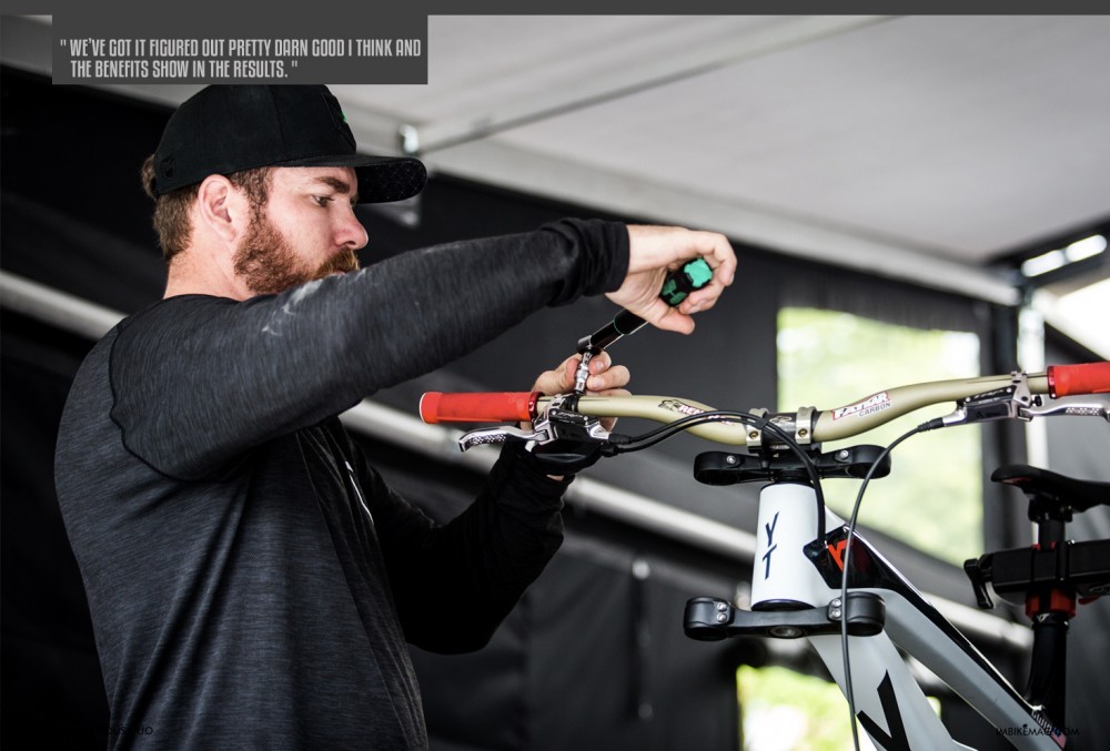 Another benefit is that Aaron being at the top of his game the way he is, he’s often chosen to develop, ride and test the latest prototype part from any one of our sponsors. So its beneficial for me to be there to install and maintain as well as pass feedback on to move the development process along a little more efficiently so he can focus on his training and what he needs to do in order to go fast. That's what its all about, helping him go as fast as he can and taking whatever I can off his plate so he can focus on that as much as he can.