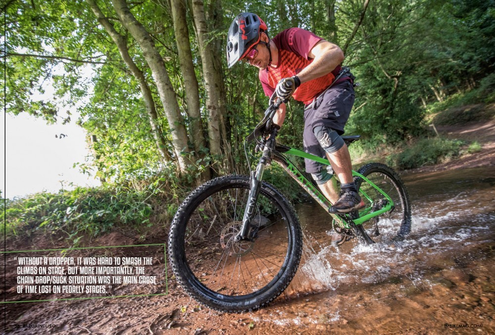 Firstly without a dropper, it was hard to smash the climbs on stage, but more importantly, the chain drop/suck situation was the main cause of time lost on pedally stages. The agricultural fork, didn't take much of the sting out of the trail, but overall the bike was fundamentally good, and not a world away from any other mountain bike. If I could have put the power down more easily I'd have been faster, and a better fork would be comfortable, but that's all. I do reckon, however, that Jono Jones would win on a tricycle, so maybe the analysis is pointless.