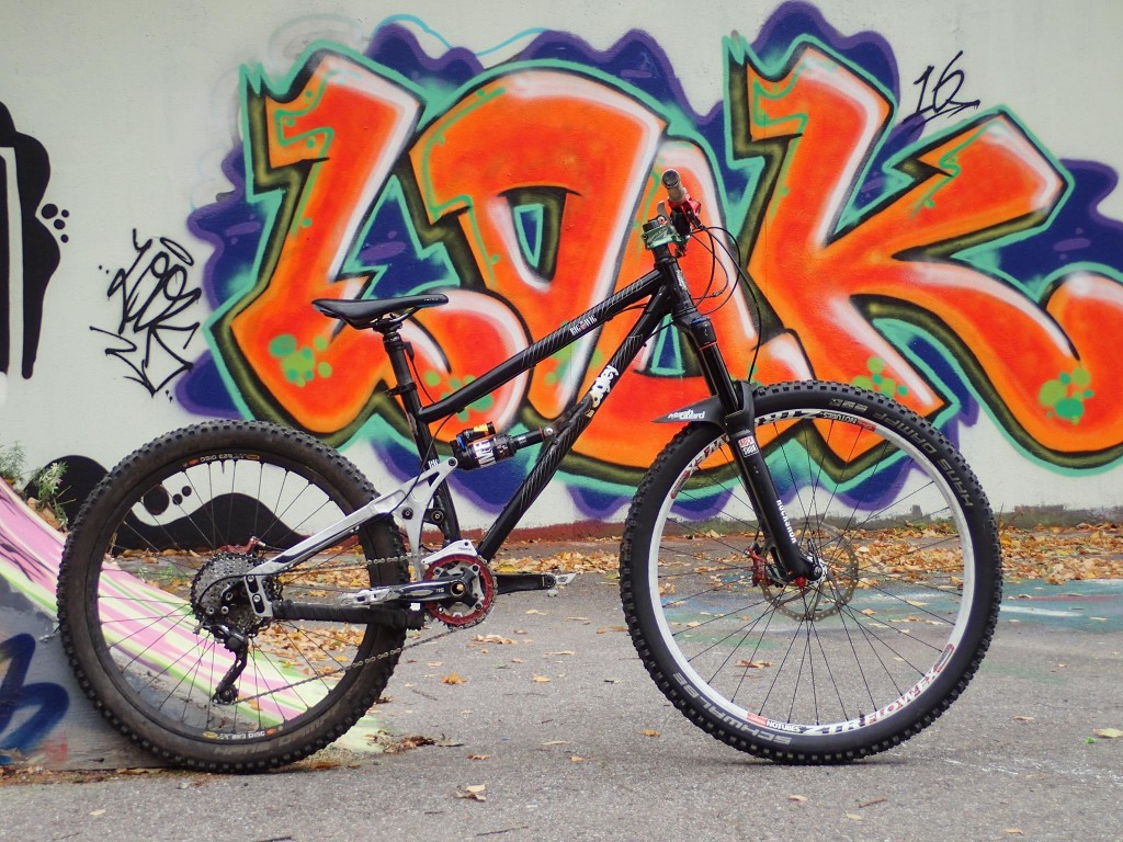 It might not quite be Halloween yet but Dan Almberg from Sweden has gone all Frankenstein on three of his broken bikes to create this crazy-ass 69er full susser, using the front end of his busted Ragley Big Wig 29er, the rear off a creaking Banshee Spitfire 26er and parts from an old Canyon Strive.