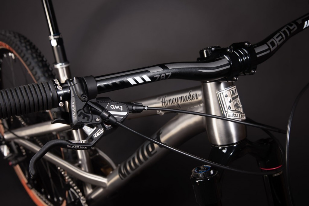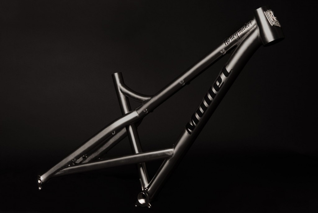 Mullet Cycles is proud to introduce their 140mm Honeymaker Titanium Hardtail. You can buy it now for $3,999 Complete or $1,599 for the Frameset. You can ask your Local Bike Shop if they’ll carry Mullet Cycles since their main focus will be set on Local Bike Shops. For now, you can purchase off their website http://www.MulletCycles.com