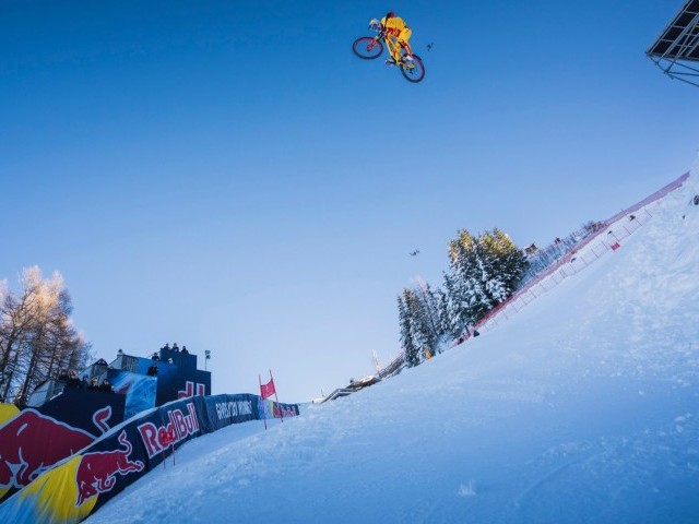 Filmed just an hour from where he grew up, Wibmer combined mountain biking with skiing to conquer the Streif’s most iconic spots during a unique freestyle descent that saw him reach a maximum speed of 107km/h and land multiple jumps including ones of 14m in height and 36m in length.