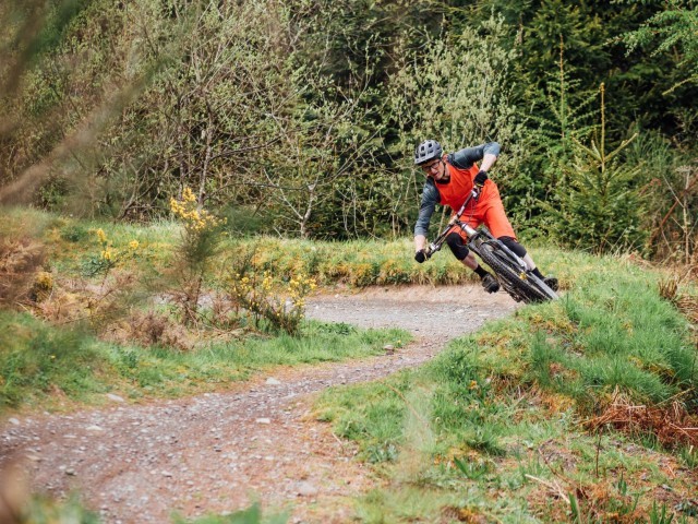 When the wheels start to slide out they will work their way higher up into the berm where they will find support and traction. As the berm gets older (and more often than not due to riders keeping the bike too upright whilst riding them at slower speeds than they were designed for) the displacement of material creates a mini berm in the upper half of the trail, material has slumped down into the lower half of the trail and the available obvious ride-line is greatly reduced. These situations can easily dupe the seasoned rider into going high round the berm, when a berm is halved like this then you will certainly need more lean to the tyres to hook up, another option is to ride what would appear to be off-line in the lower portion of the berm, but be aware there may be debris lurking in the undergrowth.