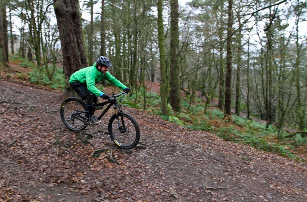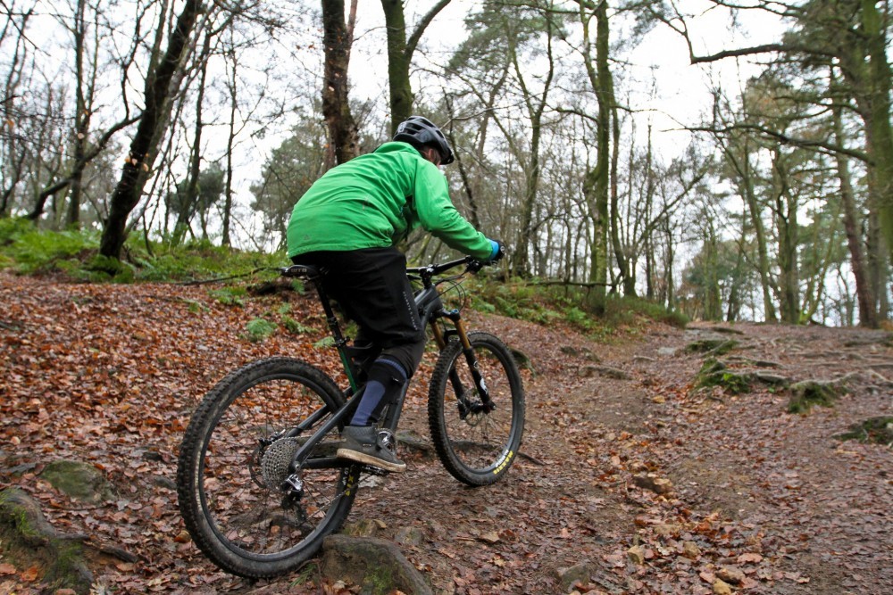 Corners: If the corner is not bermed and you want to carry speed without losing grip you need to be dynamic in your approach. We have looked at many aspects of cornering in a variety of earlier articles. With particular reference to creating traction and not losing the bike from under you there are several things to work on. Primary is keeping your weight pushing down through the tyres even when leaning the bike over hard. The bike may lean but you should not lean to the same degree. Dropping your outside pedal and weighting it heavily from above will massively increase the amount of grip you can generate. Getting both thighs round the nose of your saddle as the bike leans give you even greater potential for creating down force, dropping your weight for longer and harder, compressing the tyres into the trail surface.