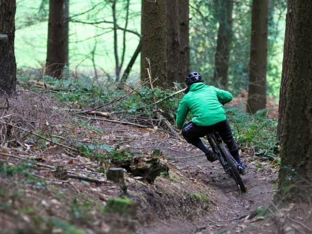 Although you may be looking to control your rate of acceleration you will need to modulate between front and rear brake. There are moments when if you restrict either wheel too much it will pick a path of less resistance and slide off down the fall line. The site of an angled root may trigger a flight-based response of pulling harder on the brakes. This will not help maintain traction. To ensure that your front wheel is not picked up and ends up following the line of a tree root you need to let the wheel accelerate more freely over it.