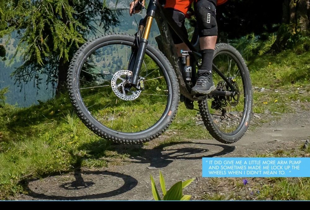 When switching to the MDR-P discs it was time to find out if these really made a difference. After bedding in the pads, it was off to ride a trail called ‘Jackass’. It starts at the 2473m high Pierre Avoi peak, above Verbier and ends in a village called ‘Cries’ (possibly referring to your lower arms and bike when you get there. The descent is a solid 1500m of steep, gnarly hairpin filled trail where you are constantly on the brakes. Great test track in my opinion.