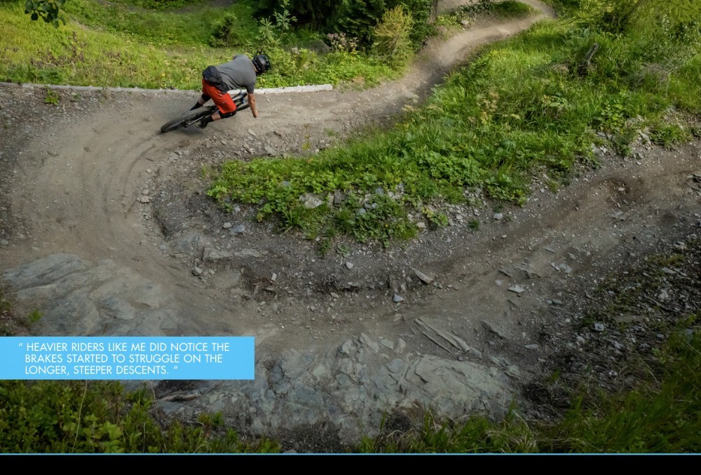 For regular trail use, they performed fine. Good amount of bite, and even on the longer descents they had a decent amount of heat dissipation. Heavier riders like me did notice the brakes started to struggle on the longer, steeper descents. You could notice the heat buildup and slow loss of bite and power.