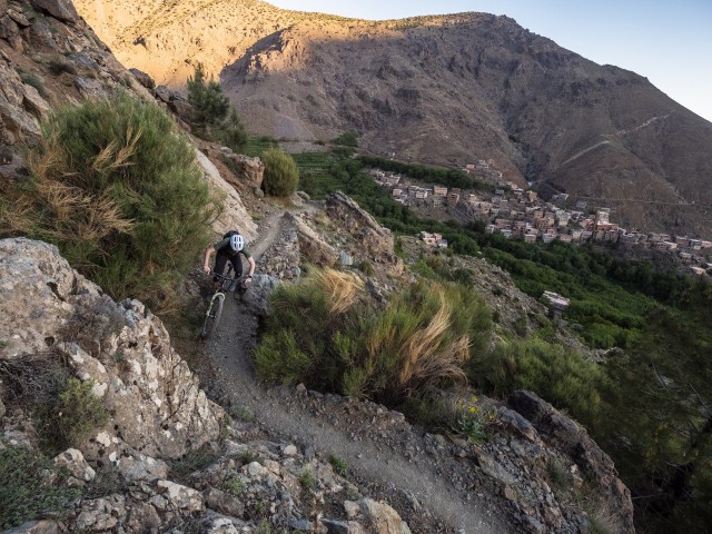 We return to the trail early next day with Lahcen and his colleagues, Mohamed and Houssain, armed with a dozen hand tools and an appetite for sweat. Dust clouds the sky as an army of toiling mountain bikers rakes and shovels and muscles boulders from flow lines, until the trail’s true potential shines. During the day we swap notes on riding styles and line choices, debate the difference between trail cleaning and over-sanitising and most importantly, the virtues of sugary versus unsweetened mint tea.