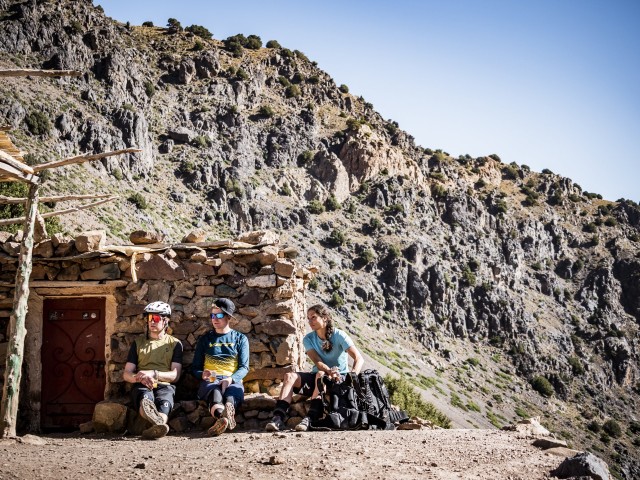 We tumble out of the trail five hundred metres below, in a sea of smiles and high fives, the air filled with excitement and reflection. The trail we just rode is an old mule trail to the pass. Trodden daily by dozens of hooves it’s a million miles from a bike park creation and if the electricity of the group is to go by, it’s more than a fun descent. But what if we cleaned it a little, perhaps adding a little more flow to the awkward corners? Lahcen agrees. “Mules and storms take their toll,” he says. Trails like this are his bread and butter; and he is more than happy to work on them. After all, a better riding experience means more happy bike tourists.
