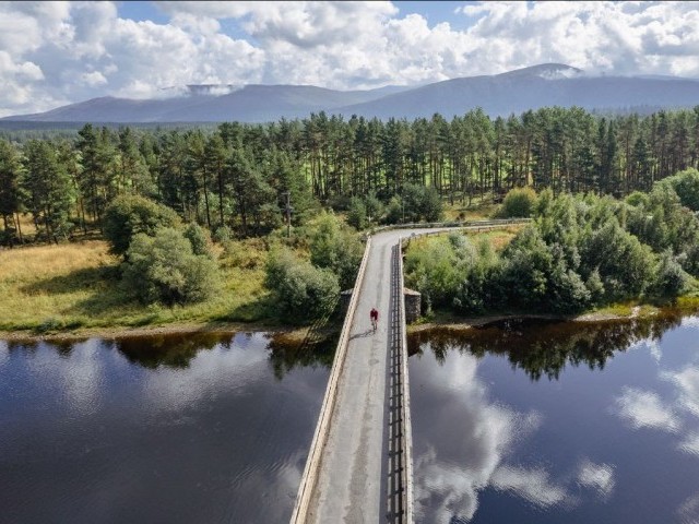 Following the Speyside Way the route passes Kincraig and Kingussie, before crossing on the Gaick Pass over to Dalnaspidal, and following a section of Sustrans National Cycle Route 7 to Blair Atholl. From there the route passes the three Munros of Beinn a’ Ghlò to Daldhu, before continuing on the Cateran Trail to Spittal of Glenshee and over Scotland’s highest road, the Cairnwell Pass, to Braemar. The journey continues through Ballochbuie Forest, one of the largest continuous areas of Caledonian forest in Scotland, past Balmoral Castle to Ballater and on to the highest village in the Scottish Highlands, Tomintoul, and the most northerly Dark Sky Park in the world. The last section of the route follows the SnowRoads scenic route to Grantown-on-Spey and the Speyside Way through Nethy Bridge and Boat of Garten back to Aviemore.