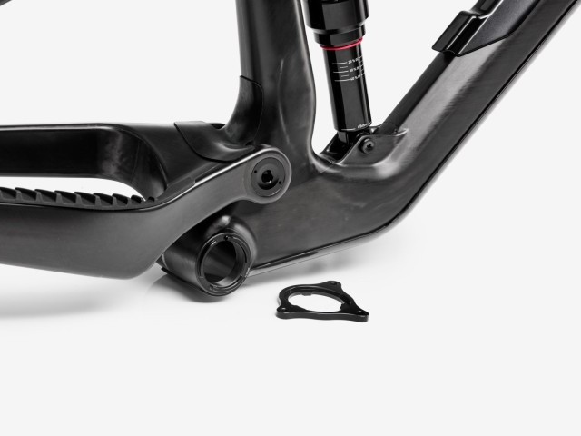 The brake caliper mount is attached to the inside of the chain- stay. This integrates the brake caliper nicely and allows the seat stays to flex unobstructed. The new rear triangle has slightly more curved seat and chainstays to further improve freedom of movement. Brake discs up to 203 mm are possible. Manufacturing advances also make it possible to laminate the threaded inserts directly. The result is a more precise mounting face on the post mount and a higher load capacity.