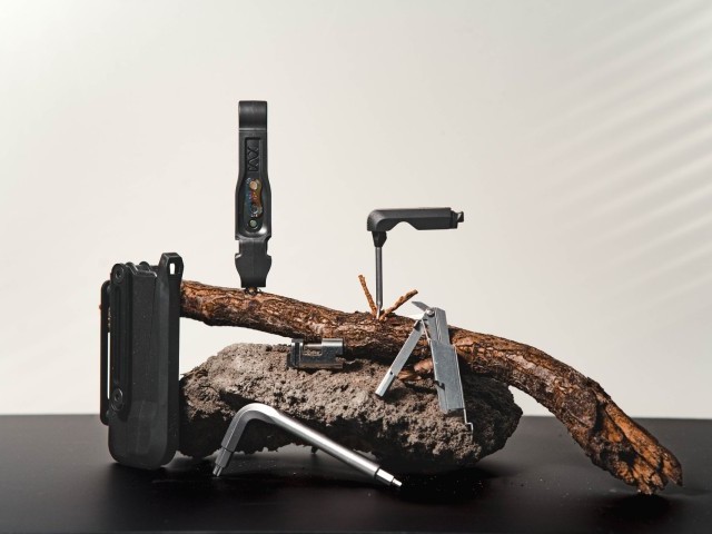 At the heart of the Hassle’off is the Essential8, a lightweight multitool with magnetic bit-in-bit technology containing all common bolt sizes (Hex 8,6,5,4,3,2.5,2 / Torx 25). Its stainless-steel construct