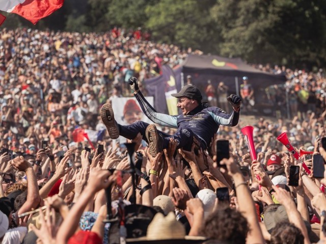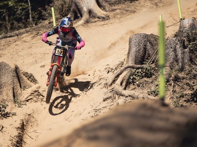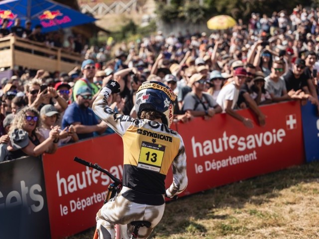 In the men’s superb downhill on Saturday, Frenchman Benoit Coulanges edged out Austrian Andreas Kolb by just 0.160s for victory with France’s Loris Vergier third, Canadian Jackstone Goldstone fourth and five-time world champion Loïc Bruni in fifth – all five within a second of the winner.