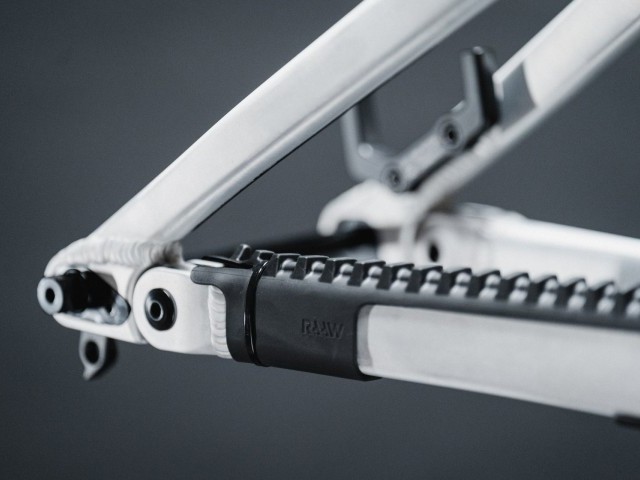 With the current trend of cables being routed through headsets, stems, and the frame, RAAW was very eager to show what a regular mechanical Sram GX or Shimano XT drivetrain can do in terms of shifting performance. But, bolt-on cable guides also allow for a very clean aesthetic in case you go for wireless shifting.
