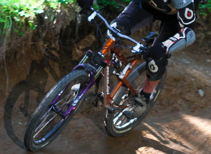 With the bike shod in hardcore rubber caution was thrown to the wind and the AM responded. Speeds went up, jumps got hit harder and the DH guys got some company.