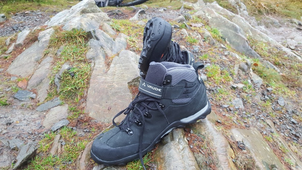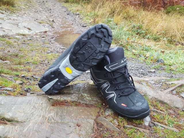 A mid-high boot designed for 'Trans-Alp bikers and freeriders', the Tonale is designed to keep feet insulated from the weather all year round. Featuring a Vibram sole with a solid platform for pedaling, whilst also aiming to allow for comfort for times when there is no option but to shoulder your bike. The Nubuck leather and Ceplex Pro membrane keep the water at bay, and full laces and a Velcro closure keep the boots in place. With a high cut, big lugs in the sole and a rubber toe box, the Tonales are solid in construction and look like they can survive a lot of abuse. As with most of the Vaude range, you can expect some serious green credentials, in this case we see a 'PVC-free' label, meaning no plasticizers, which are considered by some to be harmful to health.