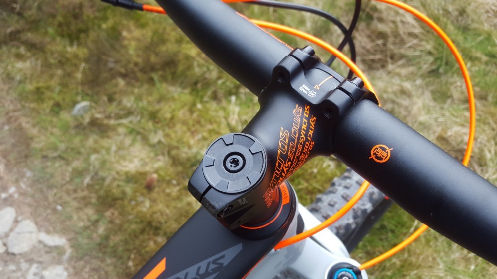 Before me stood something really quite new, a 160mm plus bike! It features all the things we expect from a standard (skinny?) Genius, including a Carbon frame (aluminium back end), Fox 36s and suspension controlled from the cockpit. This is classic Genius, with a three position lever allowing total lockout of both front and rear, fully open and something in between. Elsewhere the spec is quality, if not overly showy with SRAM GX doing the drivetrain and Shimano SLX covering the brakes. The wheels are Boosted and are Syncros hubs and rims with a 40mm width. Syncros finds it way into most of the finishing kit with logos on the seat, stem, bars and headset. A 150mm reverb is fitted on the large, which is great to see manufacturers speccing such a large drop on big frames, there are also other touches like a 30t chainring to keep the large wheels turning with ease.