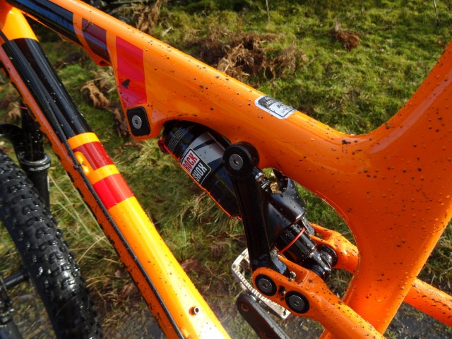 So it looks good, but is backed up with a full carbon frame, 170mm fork coupled with a 165mm rear end and some geometry numbers which wouldn’t look out of place on a DH rig. The Ride 4 geometry allows for tunability and easy changes to set-up, but I reckon full slack is the only way to go on a bike like this. Sat there on a stand in a shop, it just looks fast, aggressive, and the sort of bike that will make you do bad, bad things.