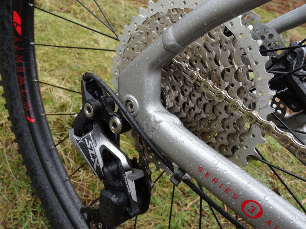 As mentioned, the brakes were excellent and I regularly wonder why I need more than a set of Deores. The TranzX dropper post is becoming commonplace and is ok, but 120mm on an XL is not enough drop. The lever and its action are good, but the rear of the stanchion is prone to wear, and the anodising has begun to strip from the metal, although it is still working fine mechanically and I have confidence it will continue to do so.