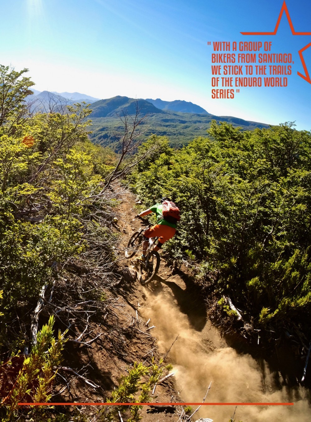 Back in Chile, even though we’re already on our way back to Santiago, there’s one thing that we mustn’t leave out: Nevados de Chillan. A skiing resort, five hours south of Santiago in the midst of an active volcanic landscape. The lifts are open for bikers in summer, and we see tonnes of riders hitting the trails. Together with a group of bikers from Santiago, we stick to the trails of the Enduro World Series once more and are rewarded with fantastic descents. Even though not all of these trails can be accessed by lift, they’re worth every drop of sweat. We’re surfing on the deep black sand, under age-old trees, past hot sulphur springs that make us remember the volcanoes around us. It's a hiking path, but corners, slopes and obstacles just make it the perfect trail for bikes.