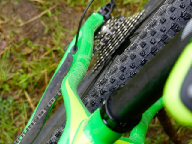 Steeper and more technical climbing was best approached with attack and momentum, as a sit and winch tactic is less comfortable on a stiff carbon hardtail. A few powerful strokes and the Big Nine happily carries its speed up and over obstacles. The tyres have a pretty rounded profile and little in the way of knobs for steep ground, so keeping speed and pushing a big gear pays dividends.