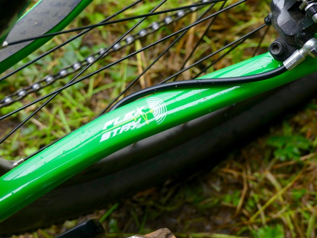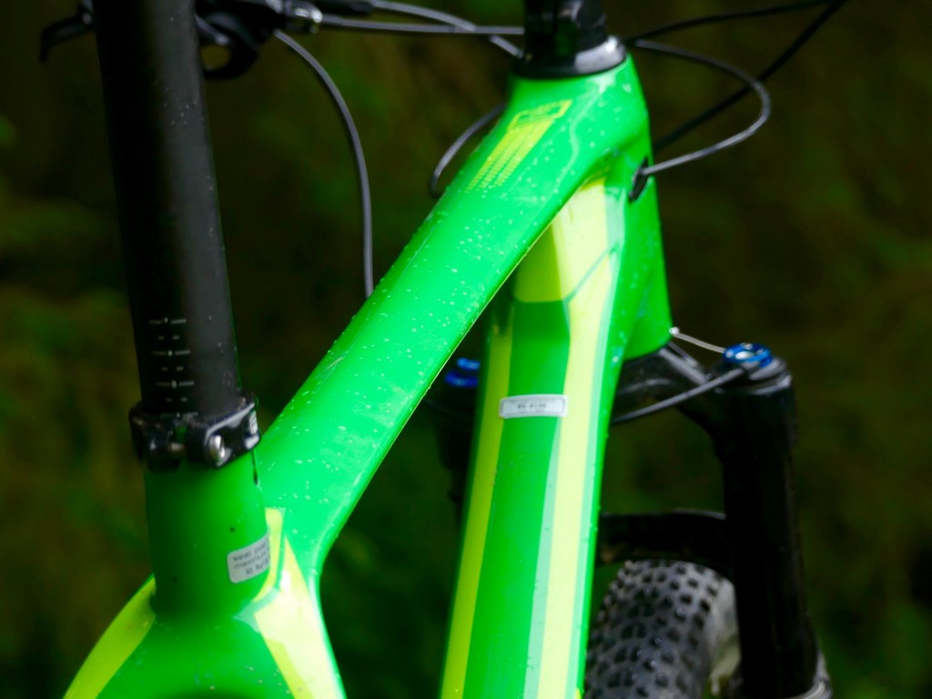 Crucial numbers on the frame are a 70-degree head angle, and a 454mm reach on the Large (21inch) giving a roomy front end, especially with the long stem. Bottom bracket gets a 65mm drop, keeping things stable, but as it's a hardtail, it'll never get much lower than that, so a direct comparison with a full suss bike is unwise.
