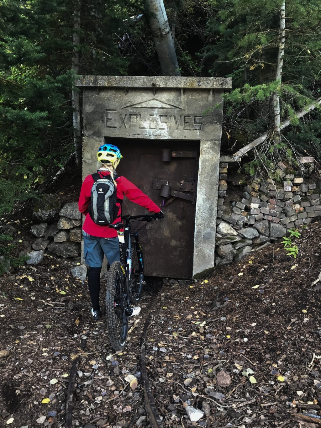 On the way down we stopped to look around and learn about the history of the area it was incredible to think that so many people had lived and lost their lives right under where we were now biking, the mining tails had helped to shape the land and bring huge variety to the trail system. The massive mining structures stood in tact like ghost towns, little wooden shacks with peeling wall paper stood lonely at the side of the trail giving a glimpse into the past.