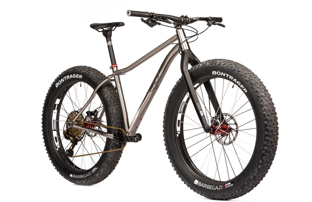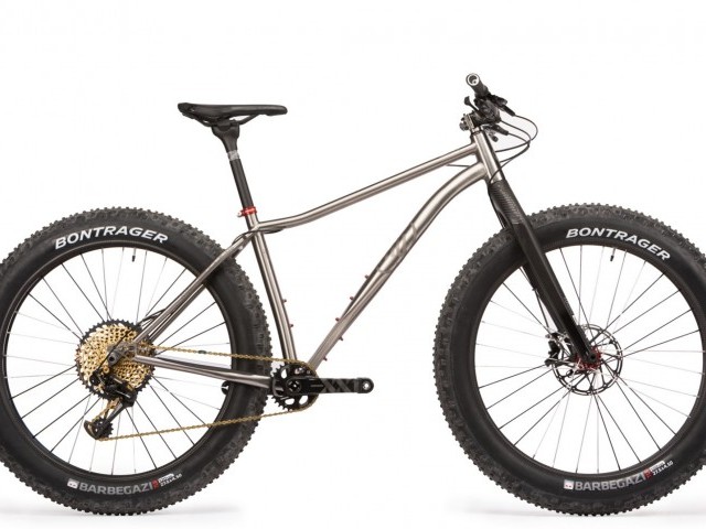 The Big Iron is a modern titanium fat bike built around 27.5 wheels. Here are some specs: