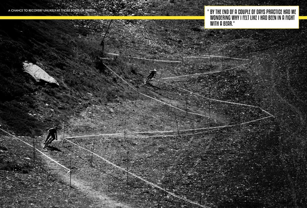 As I hit my head on the canopy out of the start hut, I'm instantly reminded that I might be punching a little above my weight. Only mildly disconcerted, I continue, safe in the knowledge that Greg Minnaar did the same thing at Leogang last year at the World Cup, so I'm in good company. It's not until I am lying on the ground after only the second corner that the evidence is starting to build up, suggesting that maybe entering a round of the Enduro World Series might have been foolhardy, especially at one of the most notoriously tough and technical rounds on the circuit.