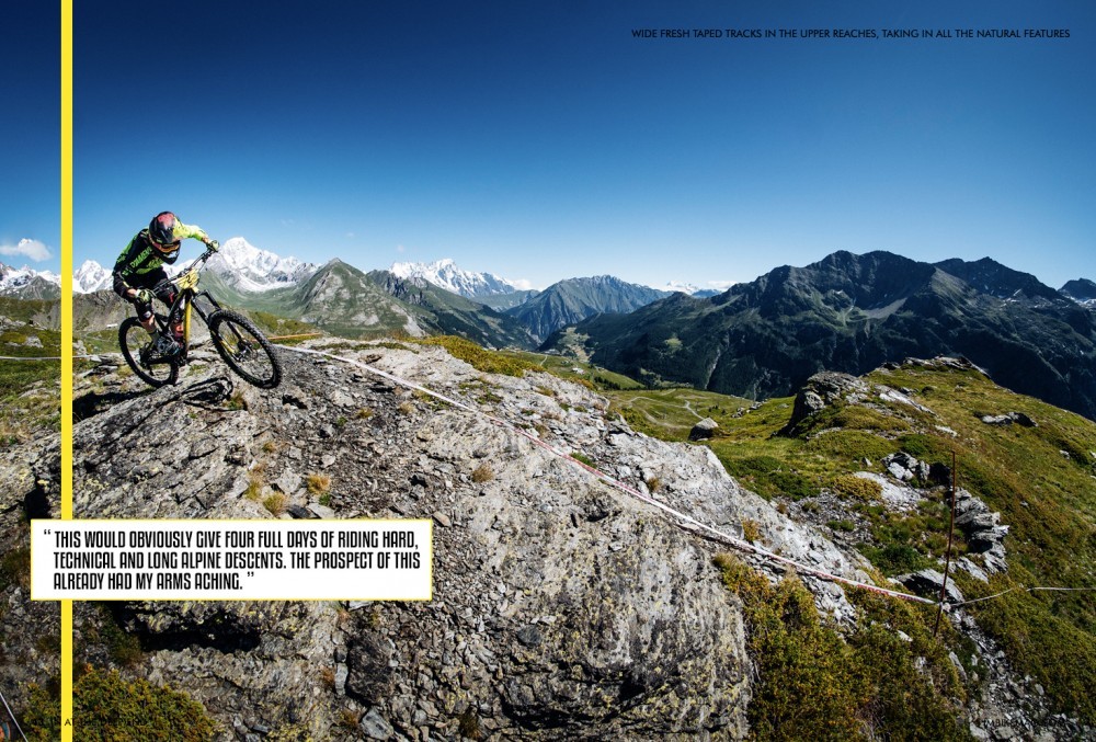 My attempt at mixing it with the best in the world couldn't be much further from the professional race teams that rolled into the sleepy little Italian Alpine resort. I had my family in tow and would attempt to juggle racing with time spent on the swings in the playground. The race was based around the resort, and the main features were two chair lifts and one enormous road climb. The schedule included two days of practice followed by two days of racing, with stage one to three practice on Thursday, four to six on Friday. These two days would then be repeated at the weekend for the race proper. This would obviously give four full days of riding hard, technical and long alpine descents. The prospect of this already had my arms aching.