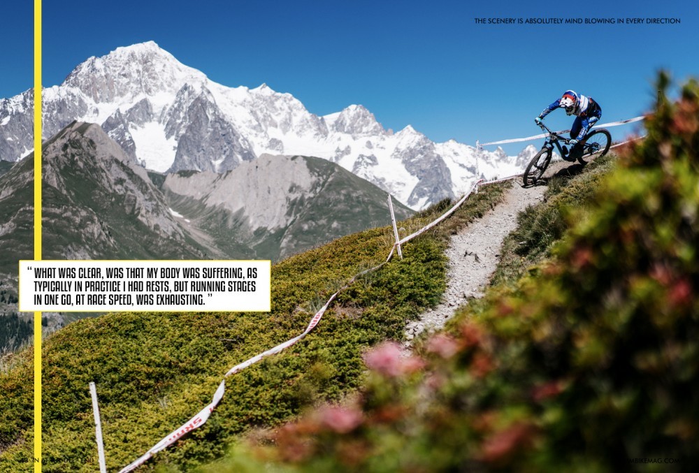 Although it was intimidating to be queuing up for number boards and lift passes with some of the best riders in the world, the feeling around the resort was more one of fun and excitement. With the British so keen on spending summers in the Alps, it wasn't long before I'd bumped into a bunch of friends and arranged for some practise laps. Surrounding myself with familiar faces, I felt less worried about the prospect of dropping into some world-class tracks.