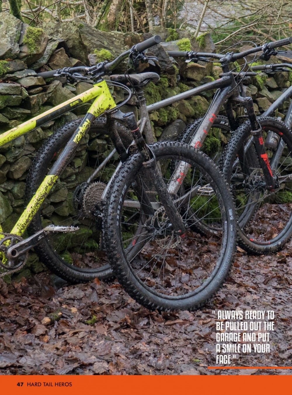 One brand that represents modern hardcore hardtails better than any is Ragley, born in 2009 they have always focussed their efforts on hardtails to great acclaim. Steven Jamieson is a man who understands the winning formula, and it turns out their bikes take more than a nod from modern trail bikes. 'The blueprint for these came from looking at modern aggressive full suspension trail bike geometry when sagged. We wanted to emulate the way that these bikes ride, but without the suspension on the rear,' Steve explains. This wasn't just based on a bit of maths, 'We knew were on the right track as soon as we tested our first prototype. Revision after revision just got better and better until you have what is on sale today'. It would seem that modern hardtails are taking a few leaves from the enduro book of geometry numbers, bringing head angles back to somewhere around 64 degrees, lengthening reach numbers and dropping bottom brackets. Frames may look not too different from a classic bike from 30 years ago, but I guarantee they ride a lot better.