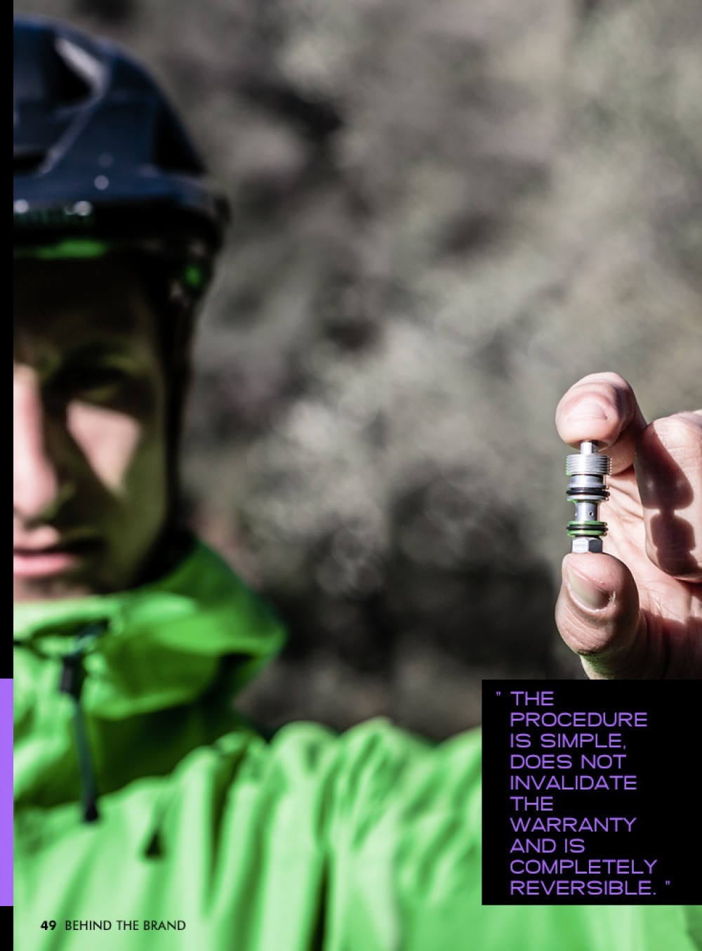 You can choose to use a different hydraulic depending on what you’re doing, weekend warrior ride or local racing. On top of that, the procedure is simple, does not invalidate the warranty and is completely reversible. With the CTS technology, every rider can reach the same customization that a pro rider has; I think this is a huge improvement for the riders.