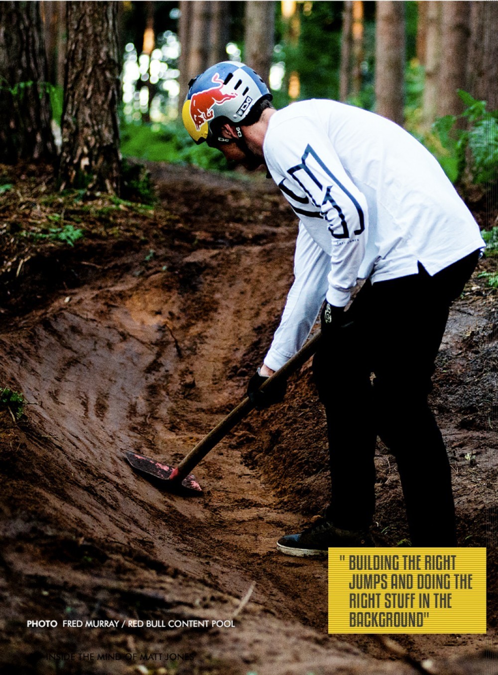 'I'm just a lad from Woburn' he says, so either Matt sees himself as a normal guy, or there are some serious bike handlers in the area. The scene was obviously there to develop young riders and the elders to dish out advice. 'There was a core scene led by a guy called Sam Johnson who I idolised. He gave me an insight into trail etiquette and digging'. For Matt, digging and riding are linked if you want to get better at riding, 'it's something I still stress to people' he says. The project has highlighted plenty, not least about the way Matt operates, 'something in this project that became clear is that I've got a pretty good understanding of visualising how jumps need to be to do what I need to do on them, due to spending a lot of years digging' he explains.