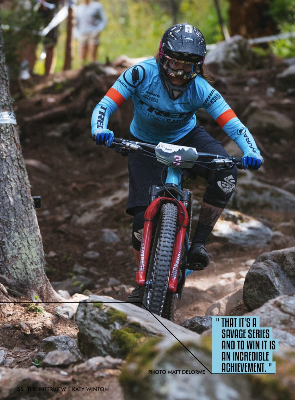 I'd emailed Trek previously, and Tracy had said stick in there because she'd be retiring soon and they'd need someone to fill her spot, and she really pushed it, and I couldn't believe that Tracy Moseley was pushing for this basically unknown rider really at that point to get on this major team. So yeah she was a big push for that and just being so beneficial for that deal and is so helpful to everyone, she has so much time for everyone. She just wants to help them, so it's been amazing to have her as a mate and also, you know, a massive support in making big decisions or changes or anything, so it's great to have her close by. Just being a great human.
