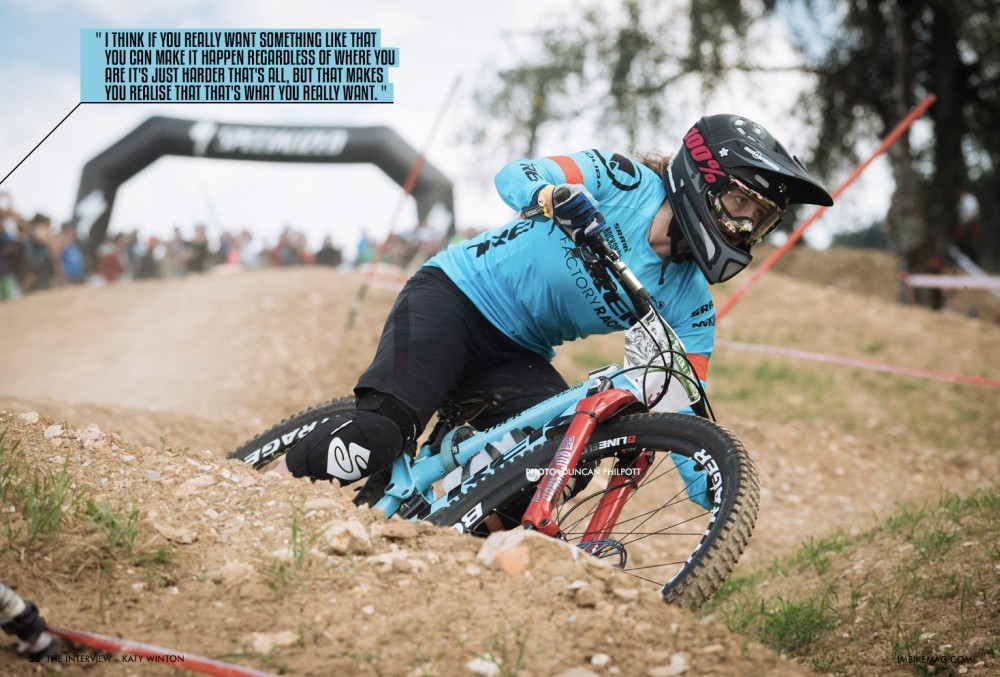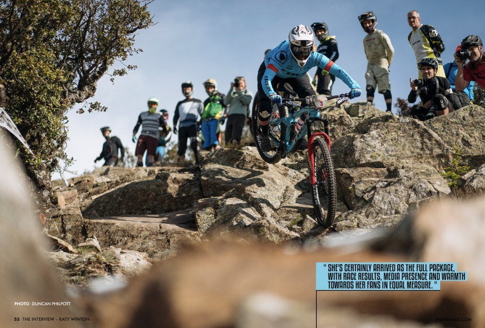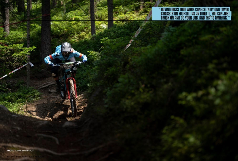 I'm not too big a deal yet, so it's OK. Last year was a big year moving up to third and has given me a lot more, I don’t know, the exposure I suppose, people know who I am now. I was sat in Glentress, and someone was riding past and said, 'that's Katy Winton' they were like 'Katy', and I was like 'oh hi!' and then they were saying to their mates, 'that's Katy Winton she's 3rd in the EWS overall'. I was just standing there thinking oh my god this is crazy, that is crazy.