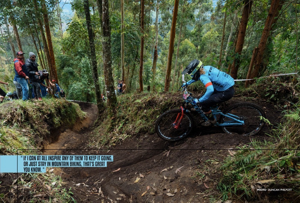 It's probably one of the biggest things that keeps me going really. It inspires me as well because you see the kids and see them light up and enjoying bike riding. When you're around them, they get even more excited and seeing them go to the Dirt Crit (local race series for under 16s) and stuff like that and watching the race, that's where it began for me, so it's nice to return to that. If I can at all inspire any of them to keep it going, or just stay in mountain biking, that's great you know. Or encourage any new ones to give it a go, that's what we want really, just more people on bikes, more kids on bikes is good.