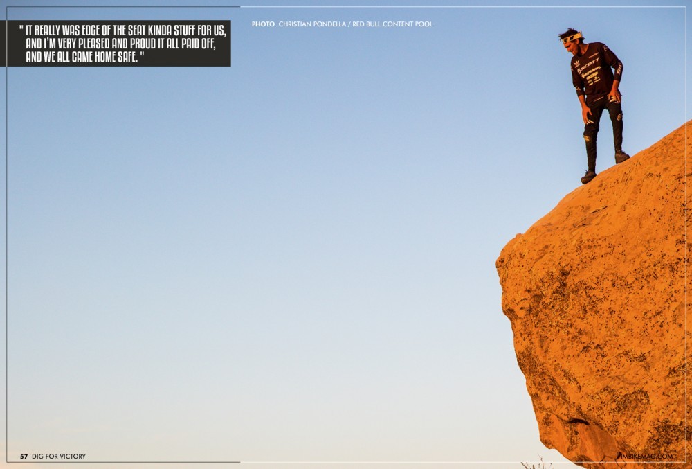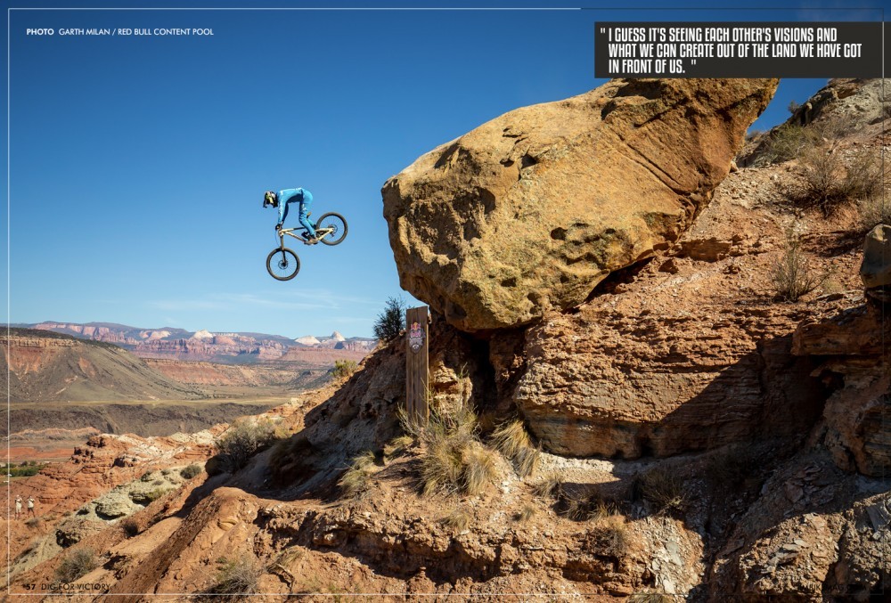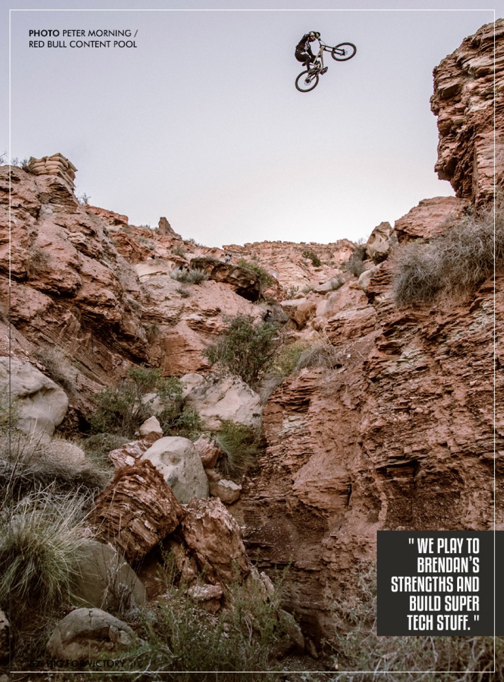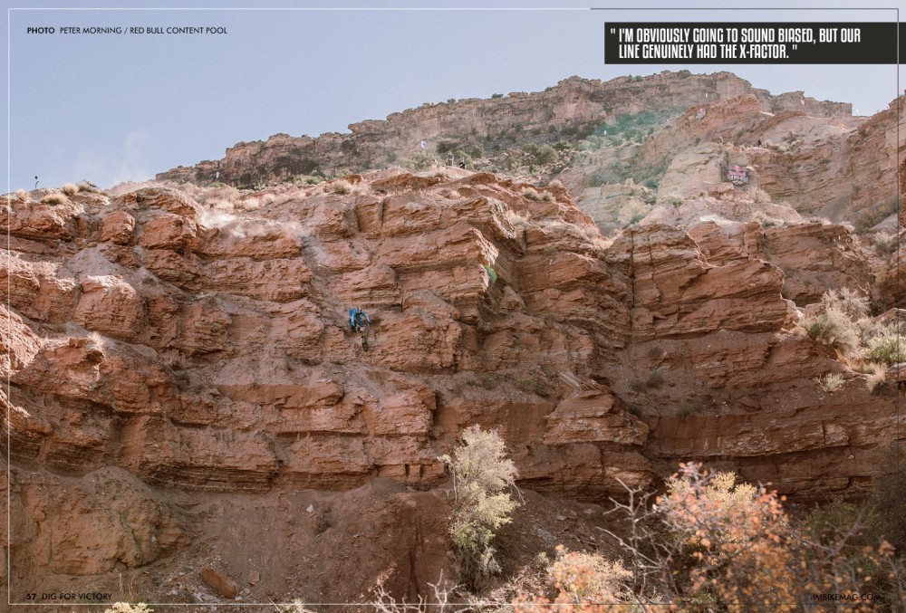 I'm obviously going to sound biased, but our line genuinely had the X-Factor. We were away from the main motorways with big jumps and smooth landings and went to the core of what Rampage is about in my eyes, sketchy raw off camber chutes, loose exposed turns and big features. These included the 50-foot canyon gap, a mental cliff ride chute and most famously 'The Rock'. A stand-alone 45-foot rock where we had a 30-foot drop off to a tiny catch berm, very unique and nothing else like it in the whole of Rampage history!