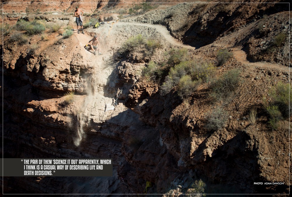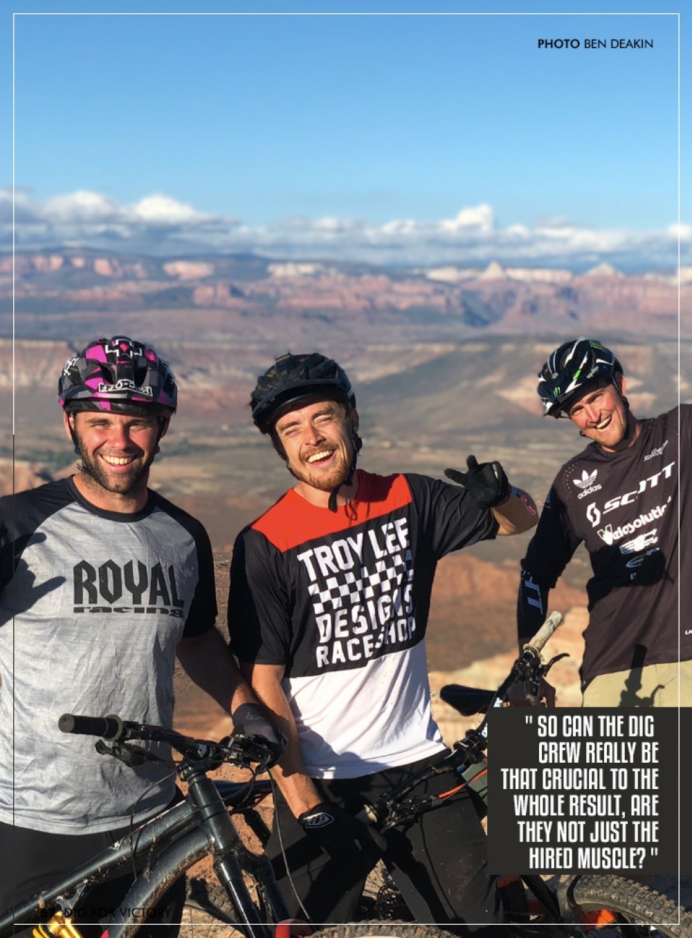 The dig team you see for 16 hours a day for 10 days solid in a hot, hostile environment, so a good-humoured and hard working team is key, Bren, Olly and I all get on really well which really helps. A bonus is we obviously all ride at a reasonably high standard, and we know each other's boundaries and have different visions and outlooks on how we can create the best line to our ability out there using our combined skills.