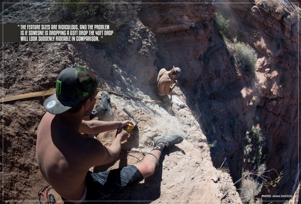 The digging is honestly 8-12 hour days of graft, It really is hard on the body and mind that's why having a good team around you that are also great mates is a huge help. When you first attend the venue, I guess you become overwhelmed of the sheer size and scale of it all, but by the end of the week you are hanging off cliffs scoping a line for your mate to ride a bike down!