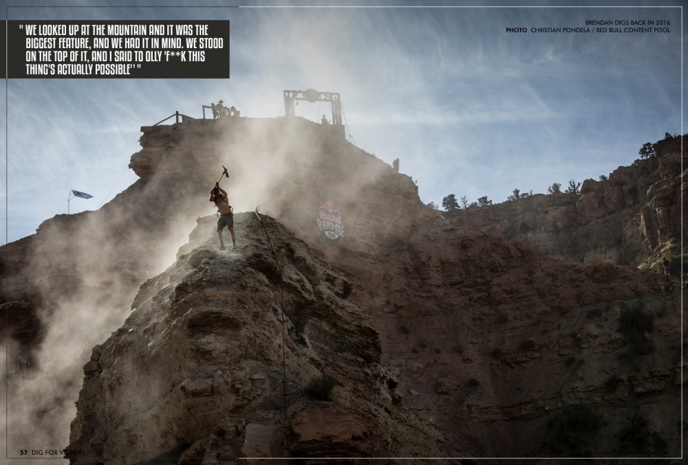 2018 is a Rampage year that will always be remembered as a classic, and Brendan Fairclough's run firmly cemented its status. Big lines, new features and controversial judging decision added to a fantastic event. I caught up with Brendan after the dust had settled from Rampage and discovered he has been putting his digging skills to good use smashing down walls and making holes in a property he is renovating. 'I've been off the boil' he tells me, enjoying the change from plummeting down hills in the desert. I've tracked him down to find out just how vital the digging crew is to a successful Rampage.