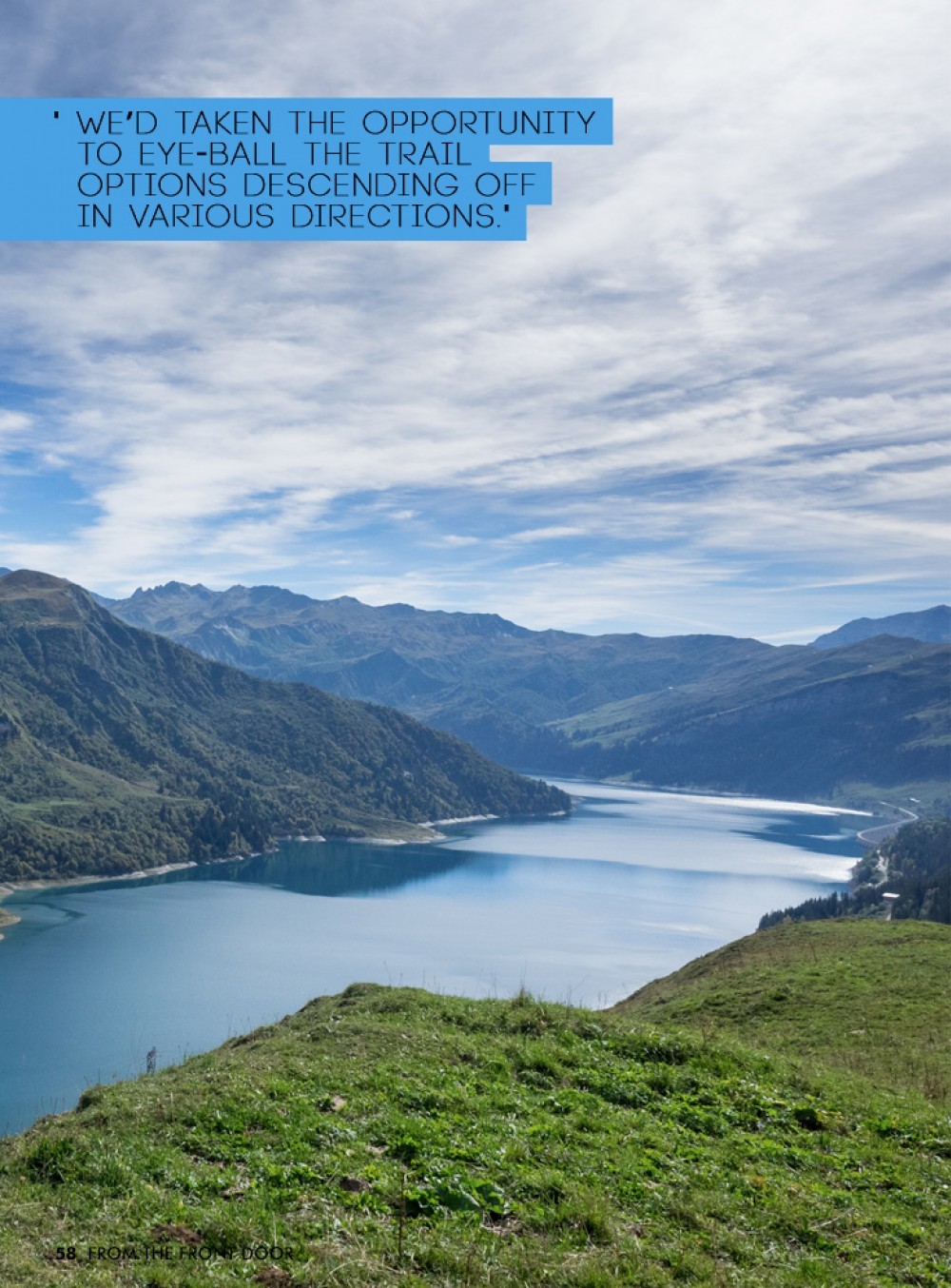 At this point, progress significantly slowed. The views were just breathtaking! In front of us, we could see Mont Blanc, completely clear of cloud. Plus we were way closer to it than usual, and it was just stunning. Off to the north we could see the mountains we’d usually be riding directly beneath, and it was quite impressive to see that Mont Pourri really is a lot higher than we give it credit for. Towering above the others in the chain of peaks heading off up to Tignes, including the Grand Motte glacier high above Tignes ski area. What an added bonus, we hadn’t even considered the different viewpoints we’d get of the mountains we usually see all the time. Looking to the south, we got completely new views – looking towards the Grand Massif, La Clusaz and Morzine directions.