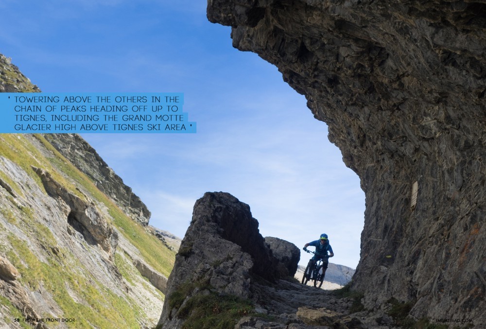 Reaching the valley floor, we crossed the river a couple of times, riding an undulating trail which at times was quite tricky. After the second river crossing the trail climbed up a little and I’d spotted a scar in the cliff above us, and above the rocky river bank. Could that be the trail? We started to descend and rounding a corner it was as if we were riding into a tunnel hewn out of the rock – incredible! It wasn’t actually a full tunnel, but perhaps about a three-quarter circle, with the river now a raging torrent a fair distance below us. It really was completely unexpected and quite something. Having seen photos of these types of trails in other areas of the French Alps, we had no idea we had one of our on more or less on our doorstep. This day was just getting better and better.