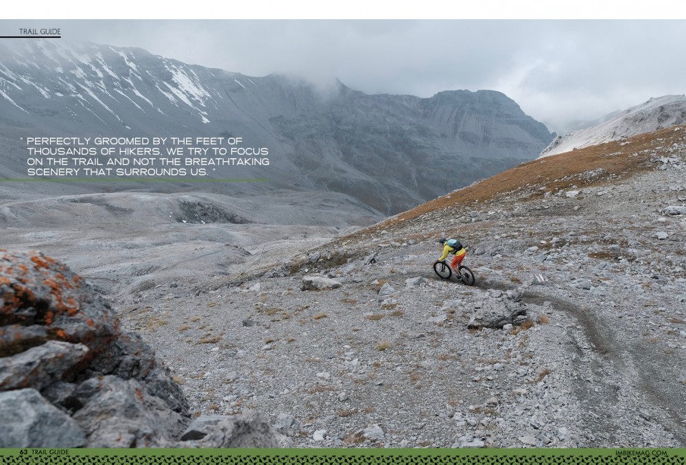 We spend a bit of time enjoying the breathtaking scenery and refueling our energy reserves, but despite or warm down-jackets we’re starting to get cold and quickly get ready for what lies ahead. The trail starts with some patches of snow from a recent dump, and even though it’s not that difficult, we still find it quite challenging – cold fingers don’t really come in handy when you’re trying to find your flow.