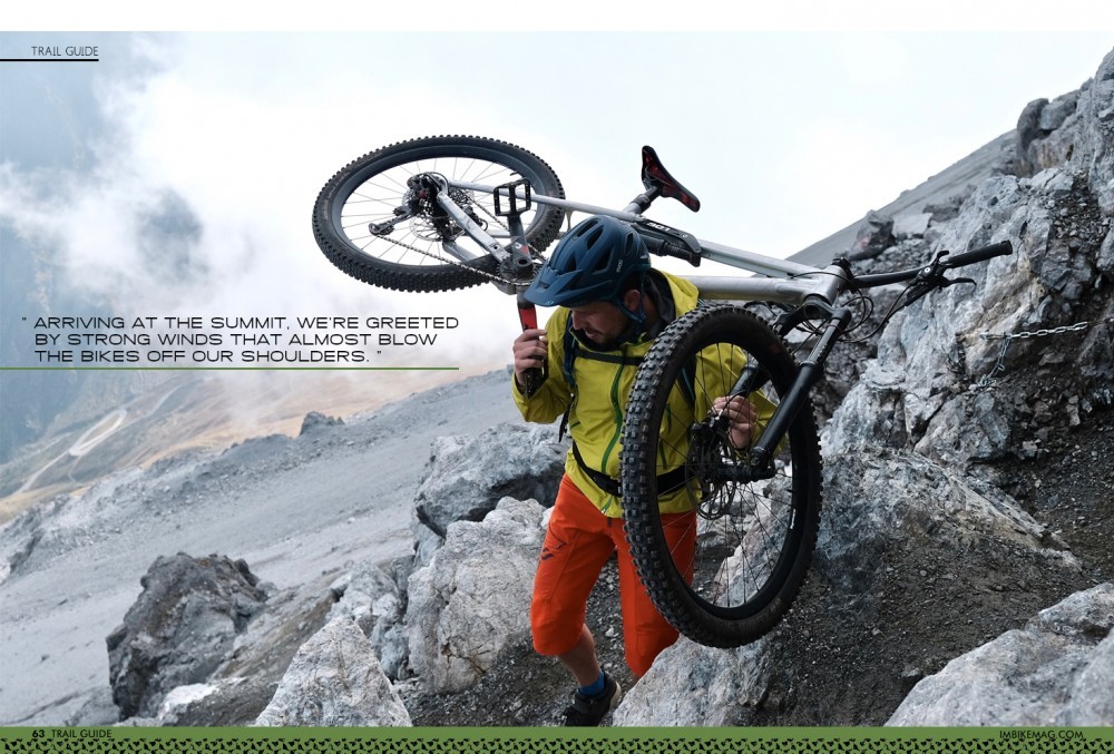 Arriving at the summit, we’re greeted by strong winds that almost blow the bikes off our shoulders. Besides us, there’s only a handful of hikers and we can’t help but feel a bit sorry for them – being here, at more than 3000 meters above sea level, with an endless trail ahead, an no bike…