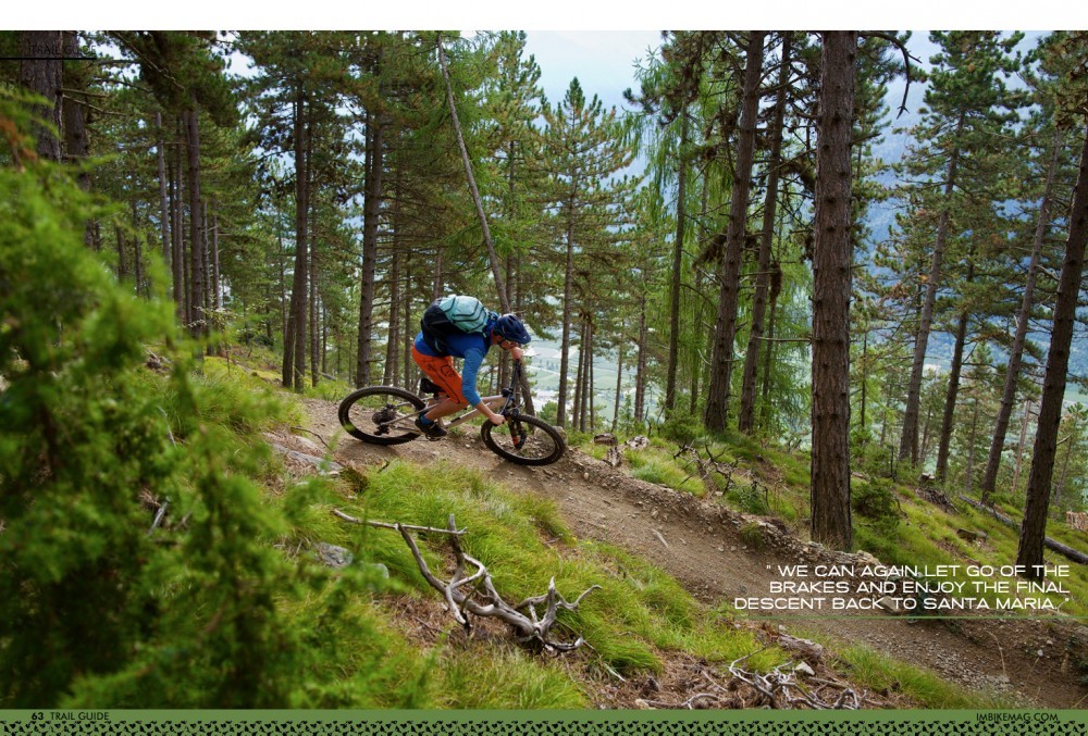 Eventually, the trail takes us to a wide gravel road and we start to think that this is already the end of our adventure. However, Switzerland wouldn’t be Switzerland, if there wasn’t another trail to take us even further towards the end of our adventure. Easier now, we can again let go of the brakes and enjoy the final descent back to Santa Maria. Wow! What a day it’s been, and a trail that really offers everything from slow and technical to fast and wide open. And the best thing? When the trail ends at the world’s smallest whiskey bar – but that’s another story…