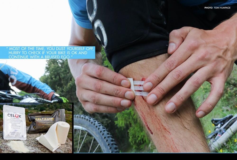 A military favourite in situations where soldiers get wounded by explosives and shrapnel, it's 4’’, 8’’ or 12’’  wide and has an integrated compression strap to apply pressure to the wound to stop bleeding. As landmines are a rare encounter out on the singletracks, the 4’’ version will do the trick for mountain bikers. Even if I’m not taking my full First Aid kit, I make sure I have one of these in my (hip) bag. Another product that might be handy to keep in your pack is Celox. This powder is designed to clot the blood within 30 seconds by using natural enzymes. Although it’s unlikely you’ll ever need to use these, having them in your pack can save the day when things turn ‘Tarantino’.